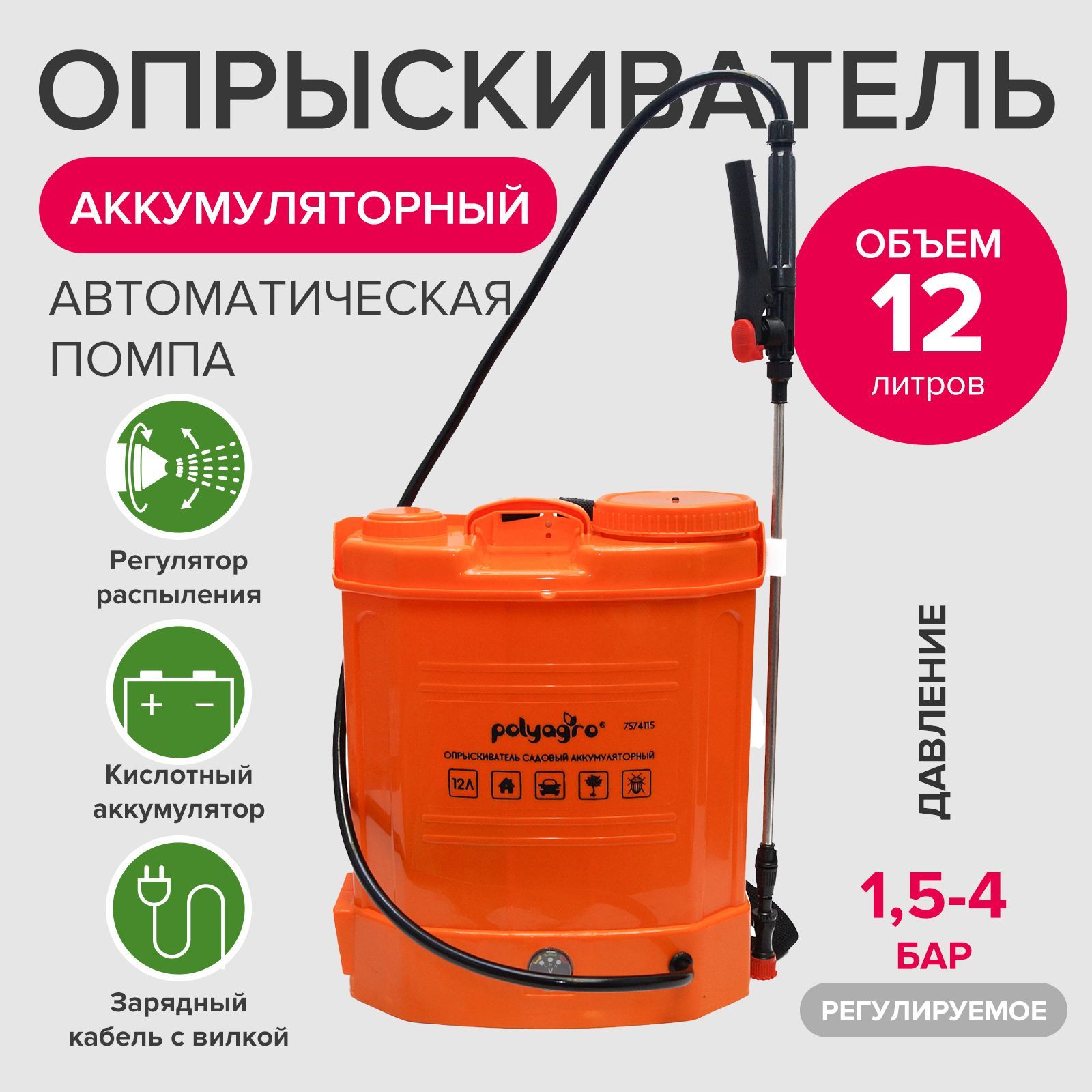 Аккумуляторный или электрический опрыскиватель внешне очень похож на ранцевый ручной вариант, но для создания давления в нём используется электродвигатель, работающий от аккумулятора, что делает его ещё проще в эксплуатации и обеспечивает более высокие технологические характеристики. Аккумуляторные опрыскиватели особенно предпочтительны в теплицах и других помещениях с недостаточной аэрацией. Преимуществами такого типа опрыскивателей являются автоматическая подача жидкости, сравнительно доступная цена, экологичность и экономия химикатов при распылении. Одной из самых распространённых моделей является аккумуляторный специализированный опрыскиватель.